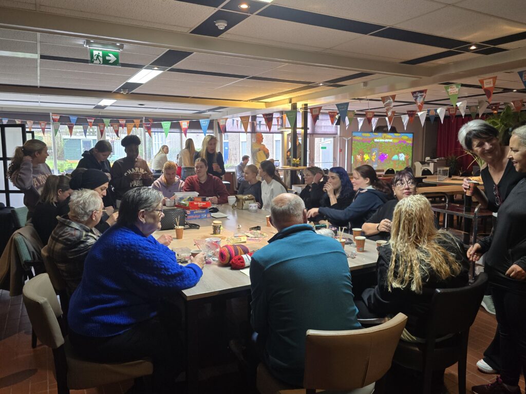 Binnen werd er creatief gewerkt tijdens een workshop bloempotjes versieren en zorgden vrijwilligers – met hulp van de Voedselbank Hoek van Holland – voor een warme lunch met huisgemaakte soep. Na de lunch werd er volop gebruik gemaakt van de interactieve muur en eindigde de dag feestelijk met een spontane karaoke. Met circa 48 aanwezigen was het een levendige en geslaagde dag.