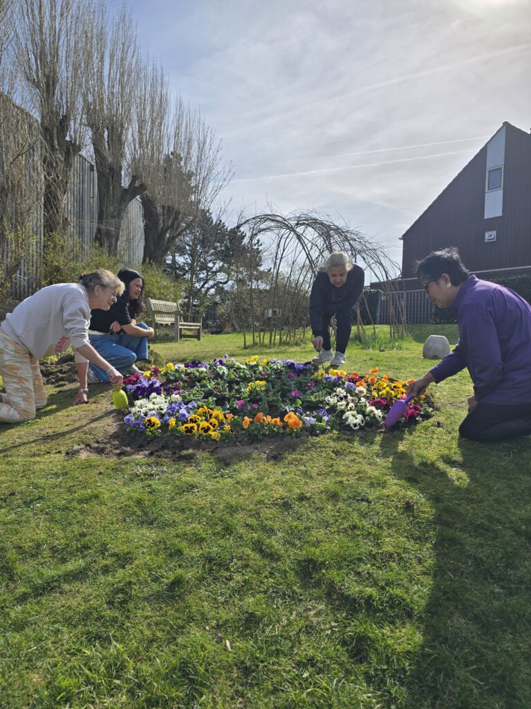 De tuin werd lente klaar gemaakt, peuters van Kinderopvang het Kompas plantten bloembollen en dankzij Janszon Flowers is de tuin nóg kleurrijker.